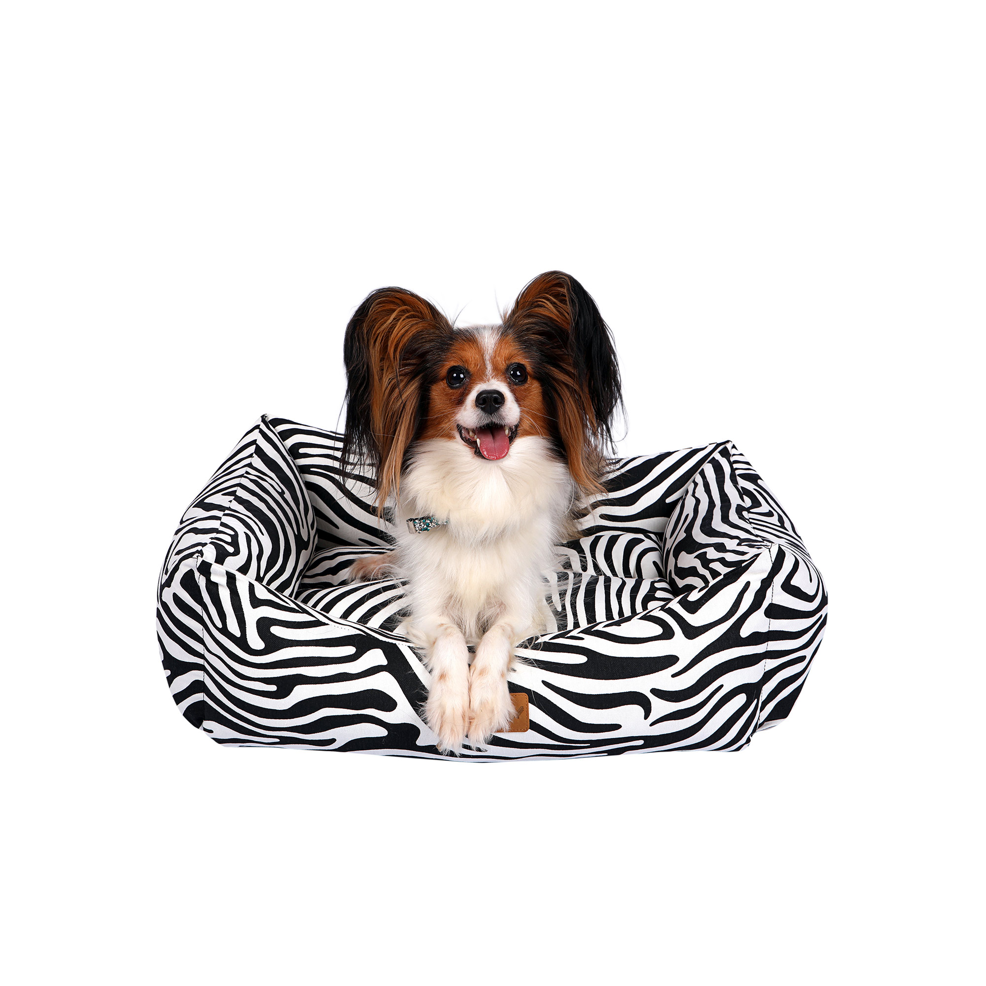 Ležaj za kućne ljubimce. Mekani krevet izrađen od prvorazrednog pamuka. Krevet energičnog izgleda s uzorkom zebre. Makaron krevet idealan je udoban prostor u kojem se vaš pas ili mačka mogu odmarati bez stresa. Gusta unutarnja površina pruža mekani osjećaj tijekom spavanja, istovremeno štiti od hladnih i tvrdih podova, čineći ovaj krevet ugodnim čak i na parketima ili pločicama.