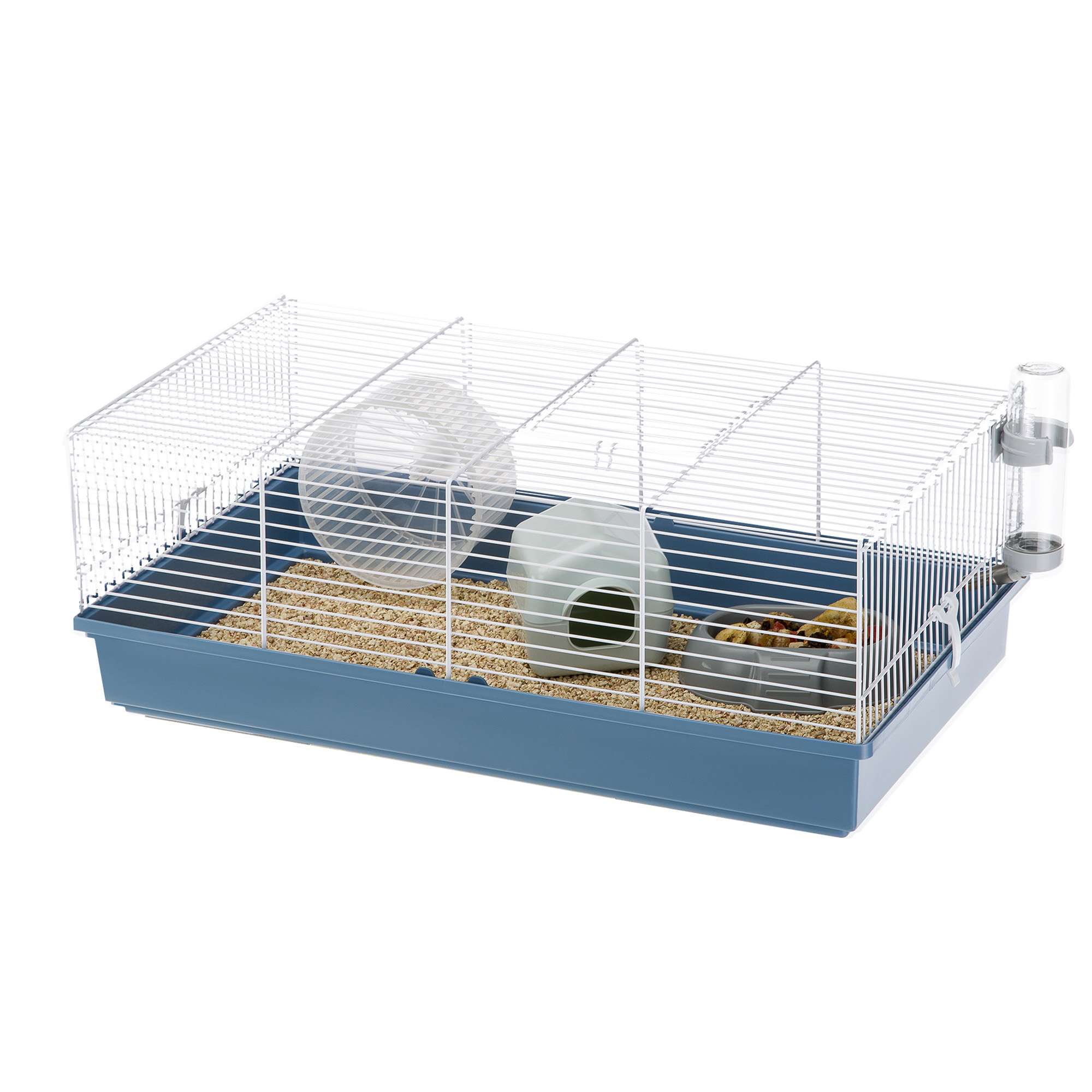 Uključuje pojilicu, gnijezdo, posudu za hranu i kotač. S odvojivim donjim dijelom za lakše čišćenje.