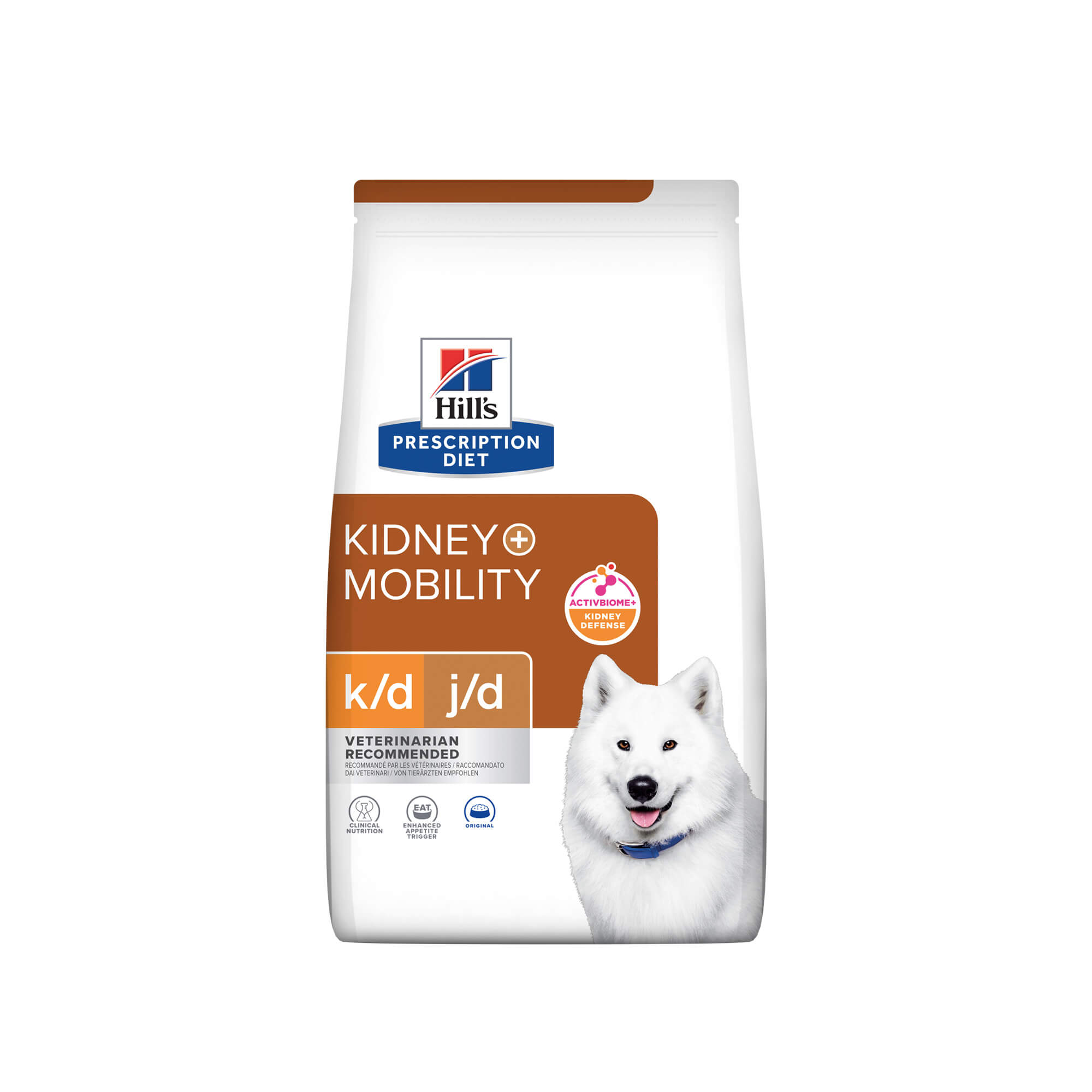 Hill’s PRESCRIPTION DIET k/d + Mobility Dog Food je kompletna dijetetska hrana za kućne ljubimce za potporu funkciji bubrega u slučajevima kronične ili privremene bubrežne insuficijencije i za potporu metabolizmu zglobova u slučaju osteoartritisa kod odraslih pasa. Ova hrana ima nizak sadržaj fosfora, ograničenu količinu proteina, ali visoke kvalitete, visoke razine EPA i ukupne omega-3 masne kiseline te odgovarajuću razinu vitamina E.
