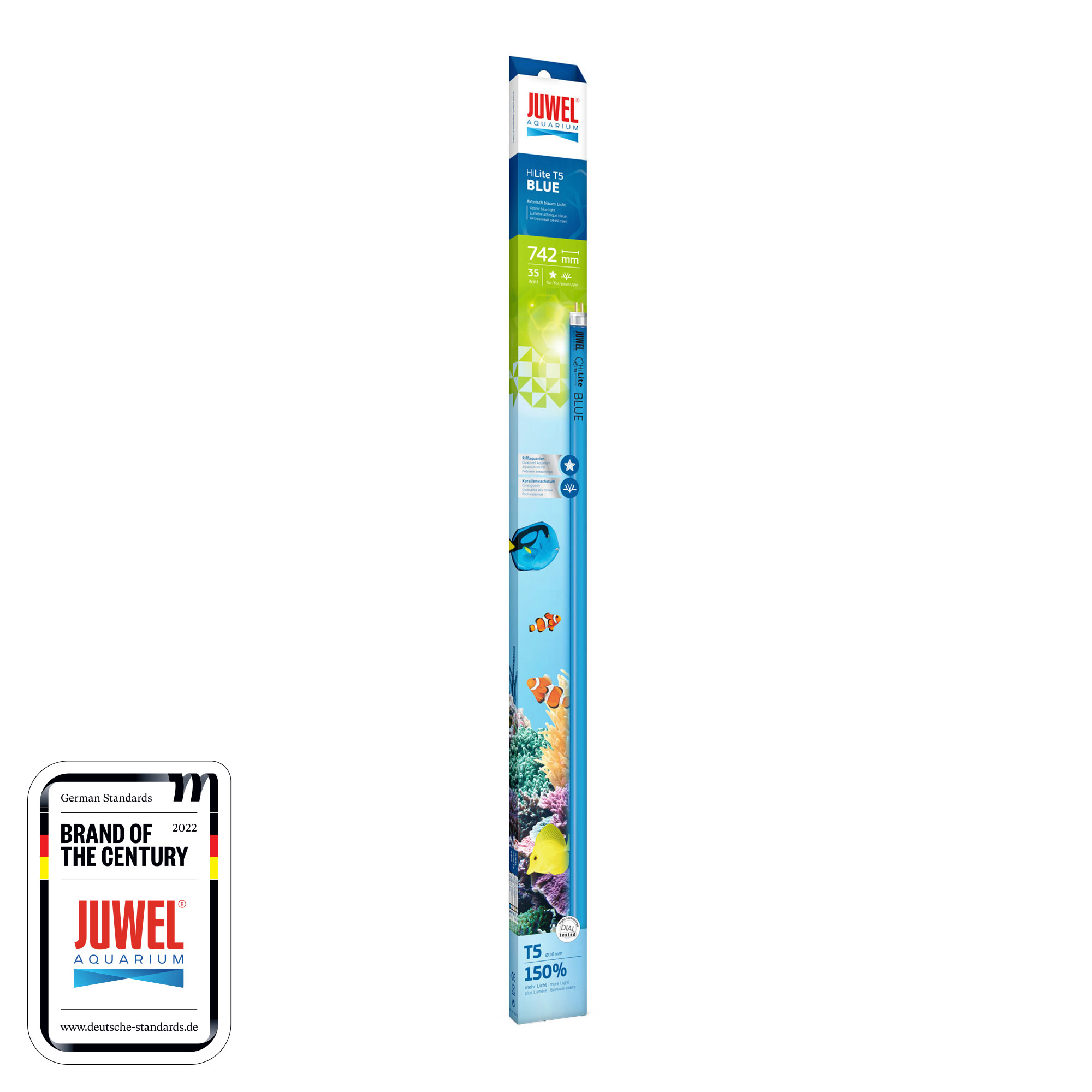 JUWEL High-Lite Blue T5 JUWEL High-Lite Blue je specijalno razvijena da bi simulirala uvjete koraljnih grebena na dubini od 6m. Predivni duboki tonovi plave boje. Potiče rast koralja. Serijski broj, dimenzije i snaga otisnuti na pakiranju. Proizvođač: JUWEL AQUARIUM GmBH & Co KG, KARL- GOX- STRASSE , ROTENBURG. Zemlja podrijetla:Njemačka. Uvoznik: DDL ZAGREB d.o.o., Abramovićeva 11, Zagreb T: 01/3017 011, www.ddlzagreb.hr