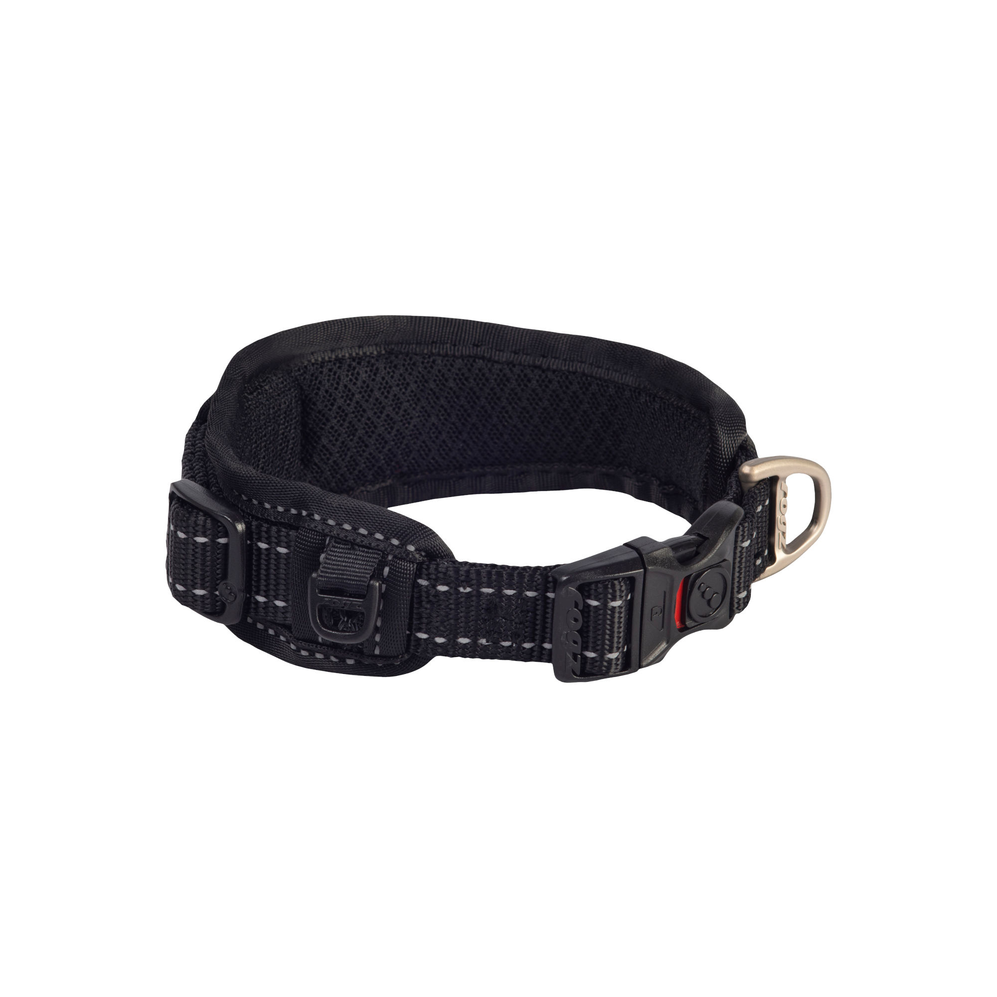 Ogrlica s podstavom za pse izrađena od visokokvalitetnog najlona. Prozračna ogrlica, ravnomjerno raspoređuje pritisak za osiguravanje udobnosti. RogLoc sustav za zaključavanje ogrlice. Osigurava udobnost i dodatnu kontrolu. Reflektirajuća pređa je utkana u ogrlicu za noćnu vidljivost.