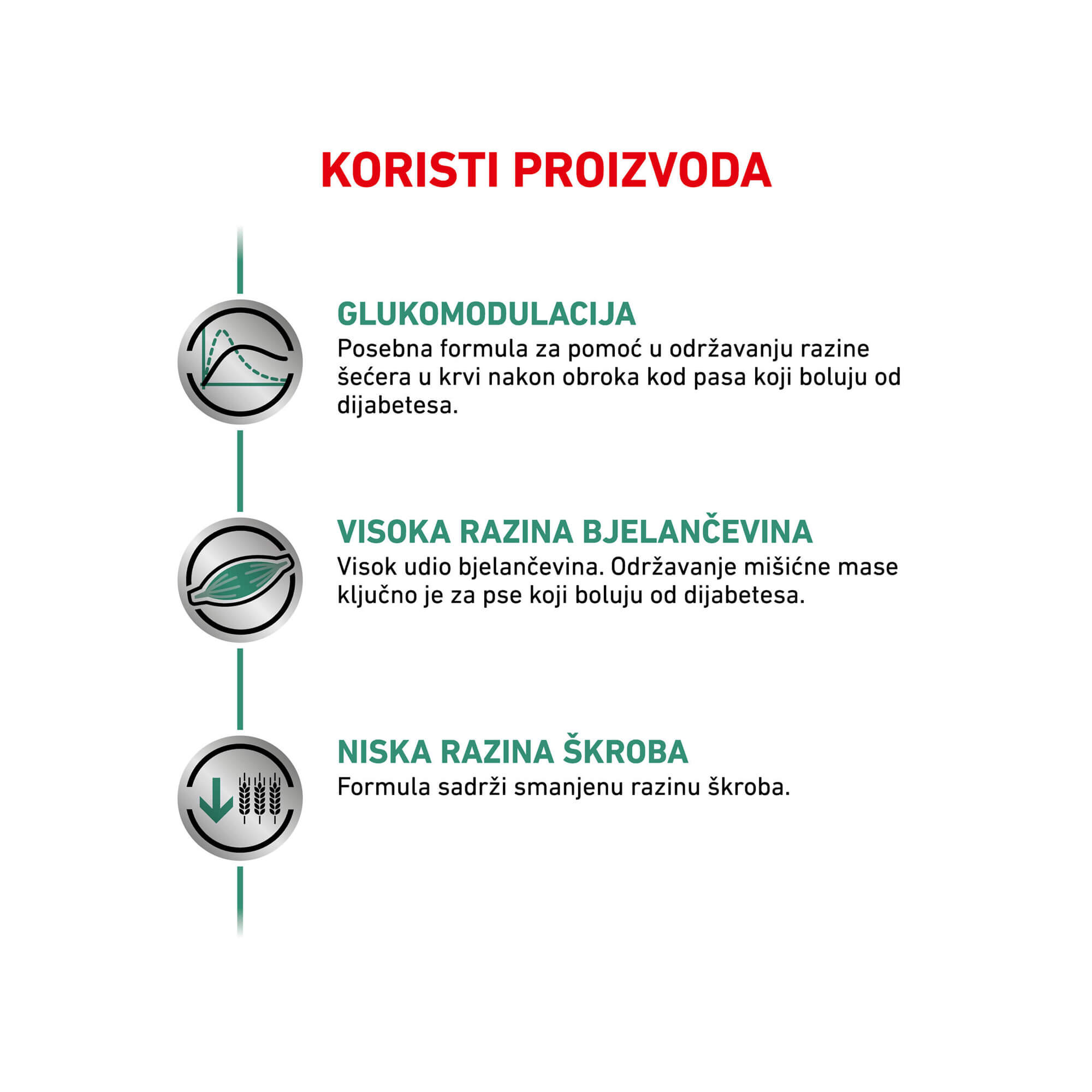 Glukomodulacija: Specifična formula za pomoć u kontroli razine postprandijalne glukoze u krvi pasa s dijabetesom.