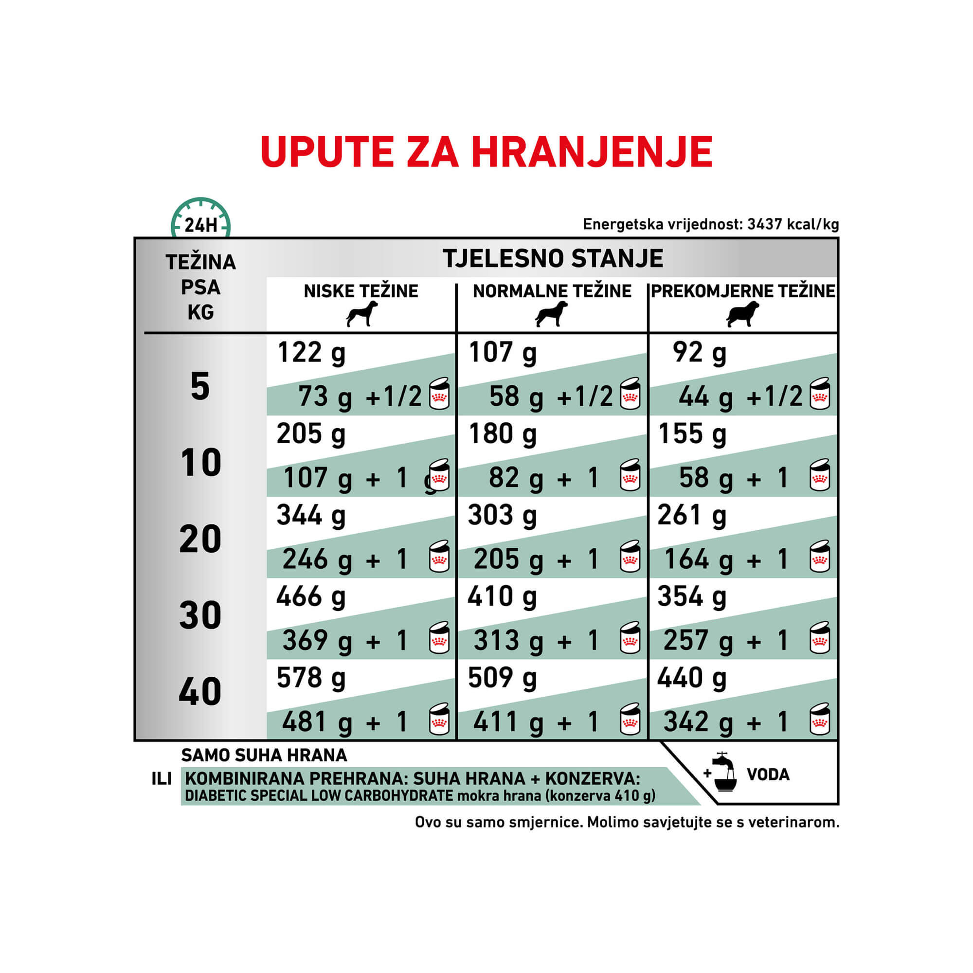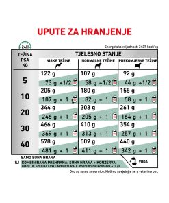 PREPORUKE: Preporučuje se prije korištenja i produženja roka uporabe zatražiti savjet veterinara. Koristite DIABETIC suhu hranu početno do šest mjeseci.