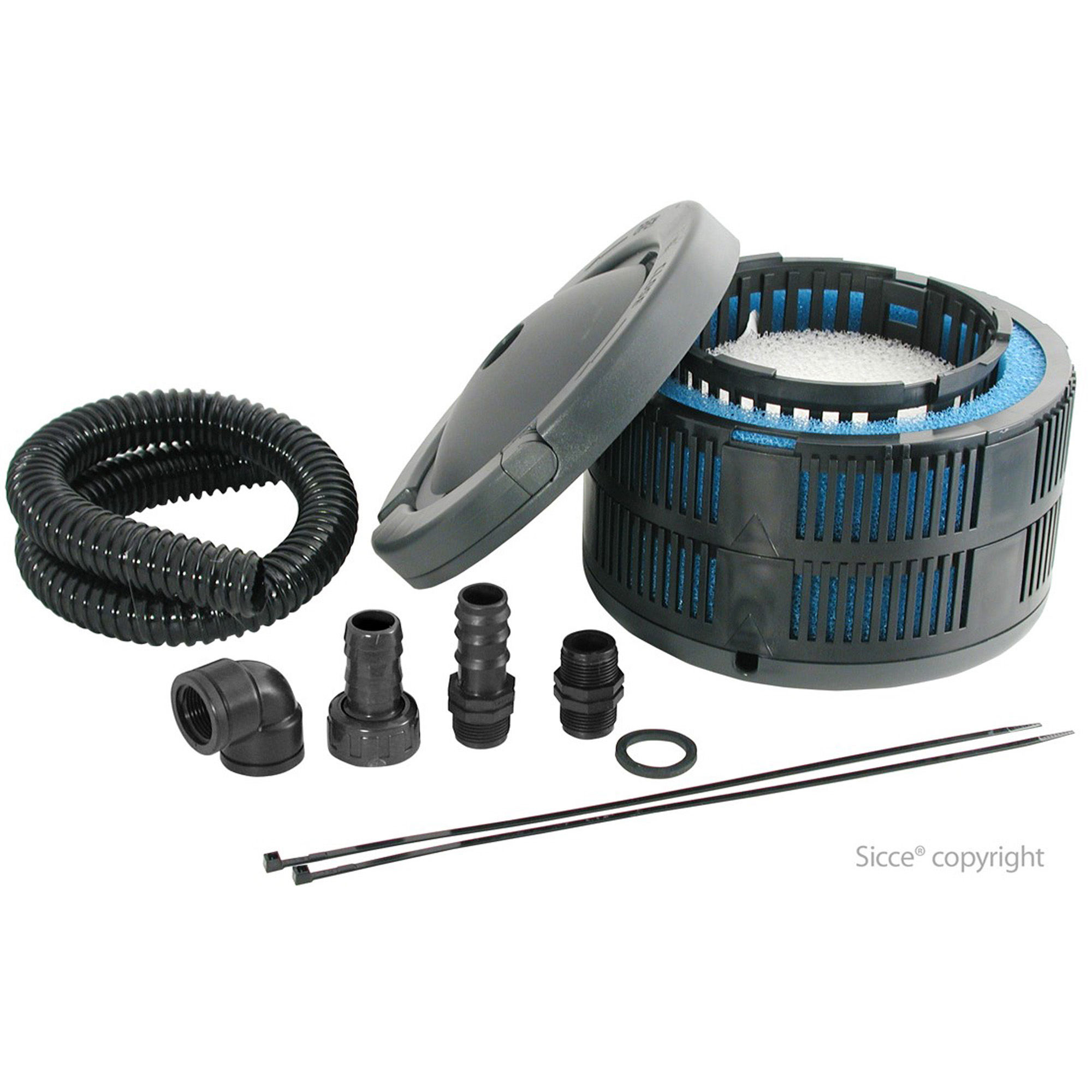 SICCE Ecomax- biološki i mehanički unutarnji filtar za jezera koji je prikladan za spajanje sa bilo kojim tipom pumpe. Velika ručka omogućuje brzo odvajanje djela sa filtom i cijevi. Kombiniranjem više filtara možete povećati kapacitet filtracije do željene razine.